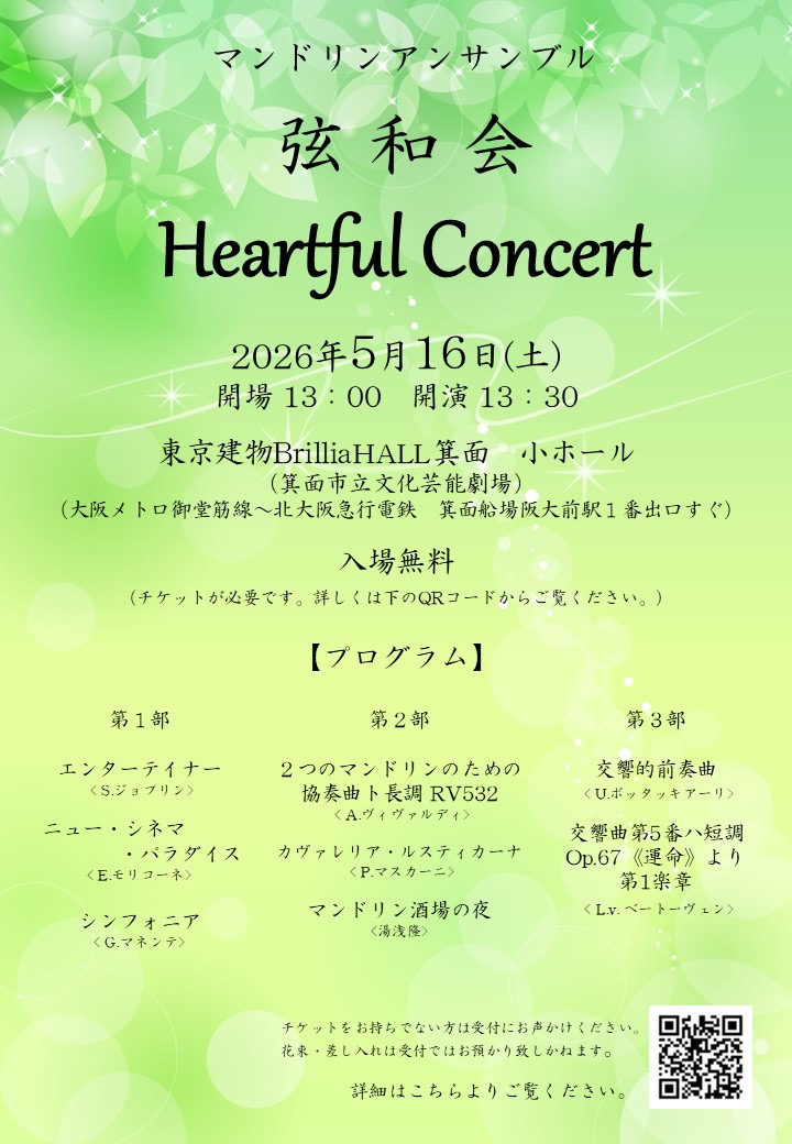 | 名称 | マンドリンアンサンブル 弦和会 『Heartful Concert』 |